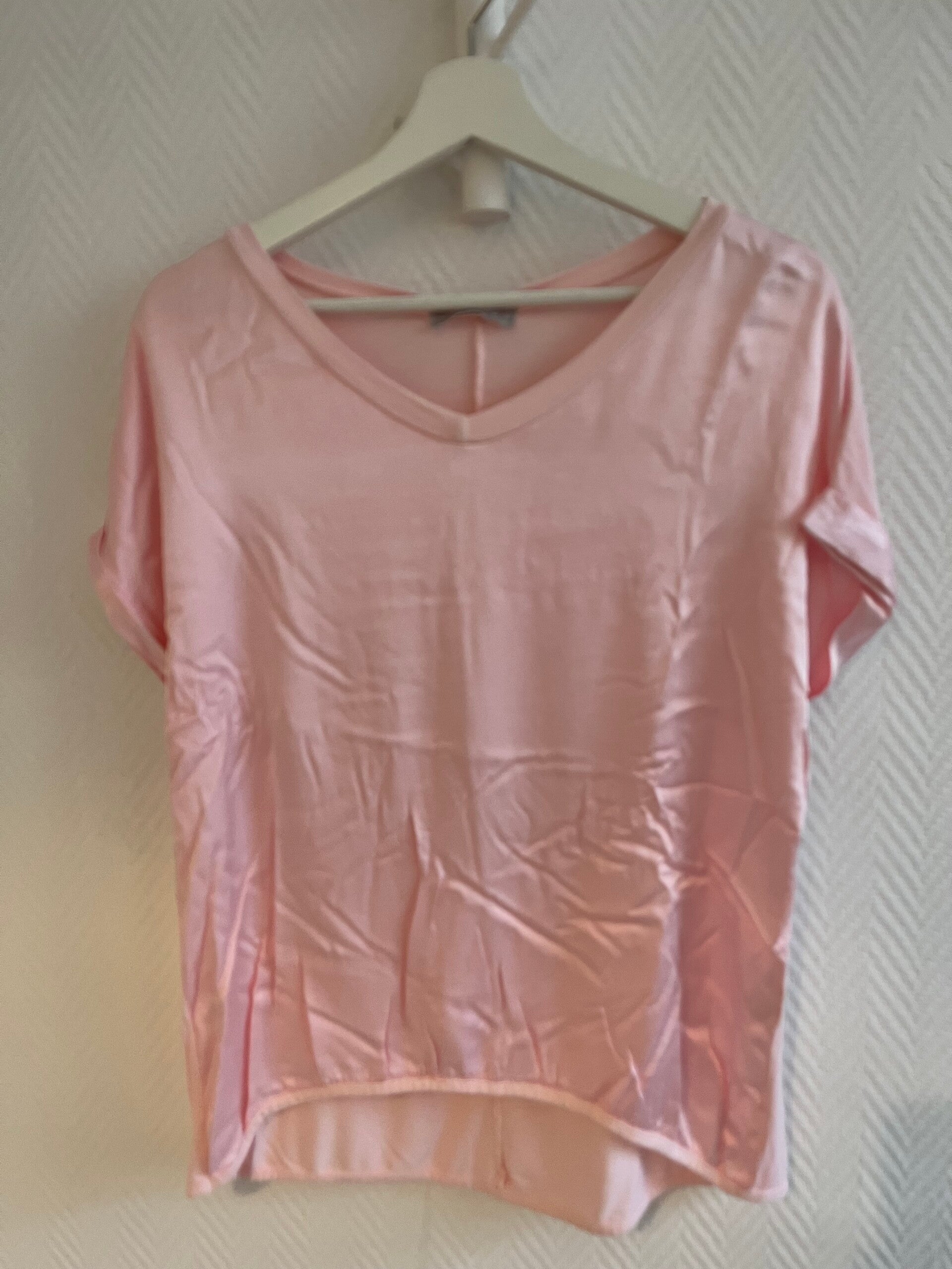 Snygg topp med glansig framsida o strechig baksida