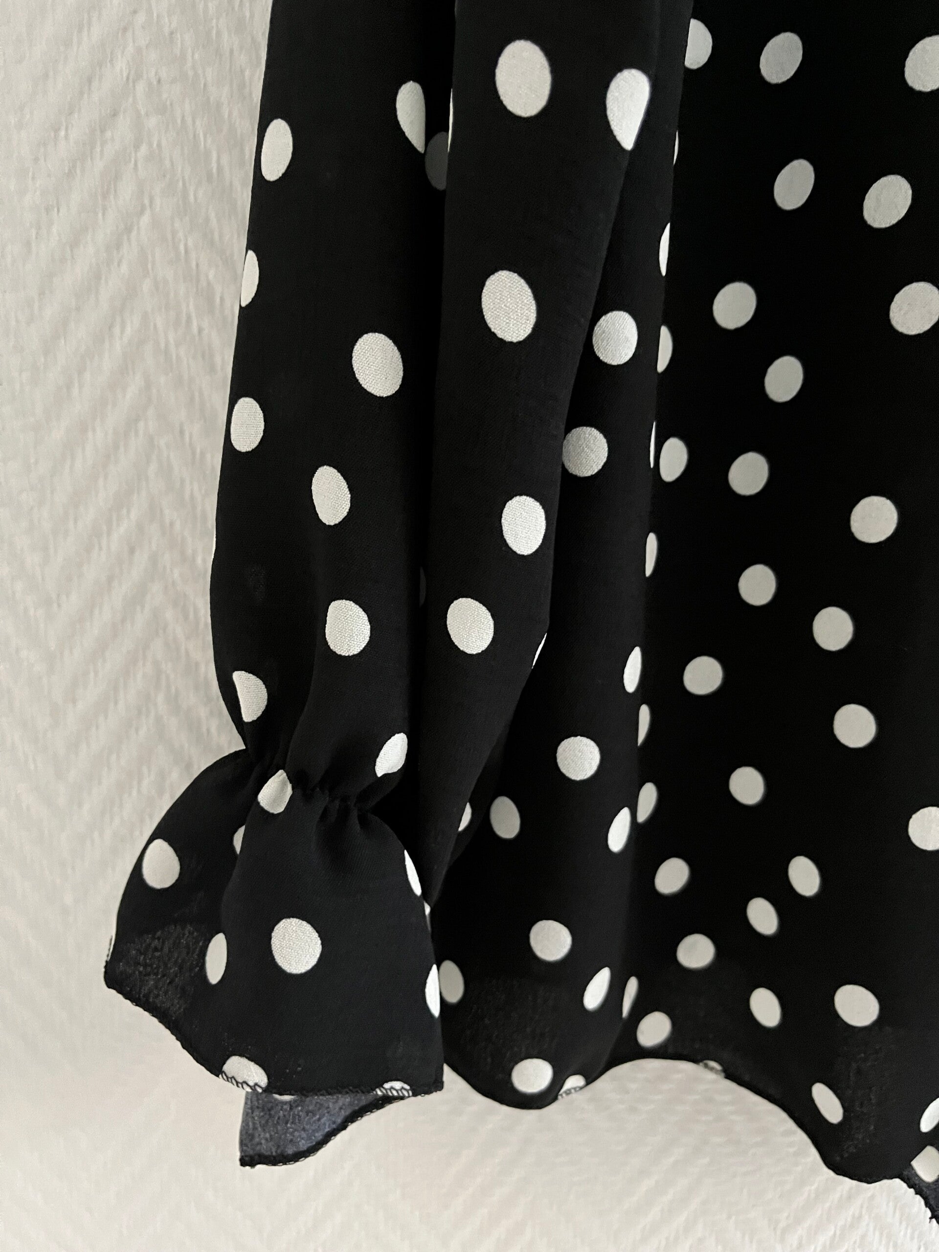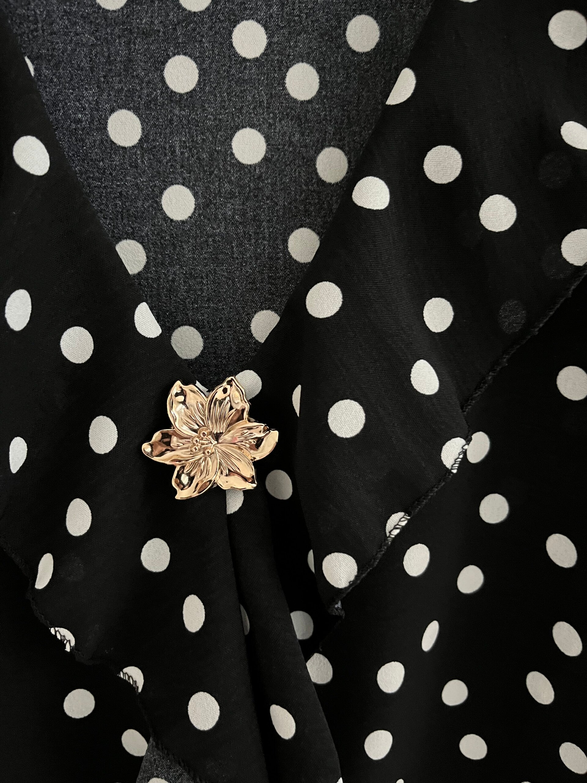 Ljuvlig prickig blus med volang fram & en avtagbar broch, lika fin till vardag som fest som till byxor & kjol