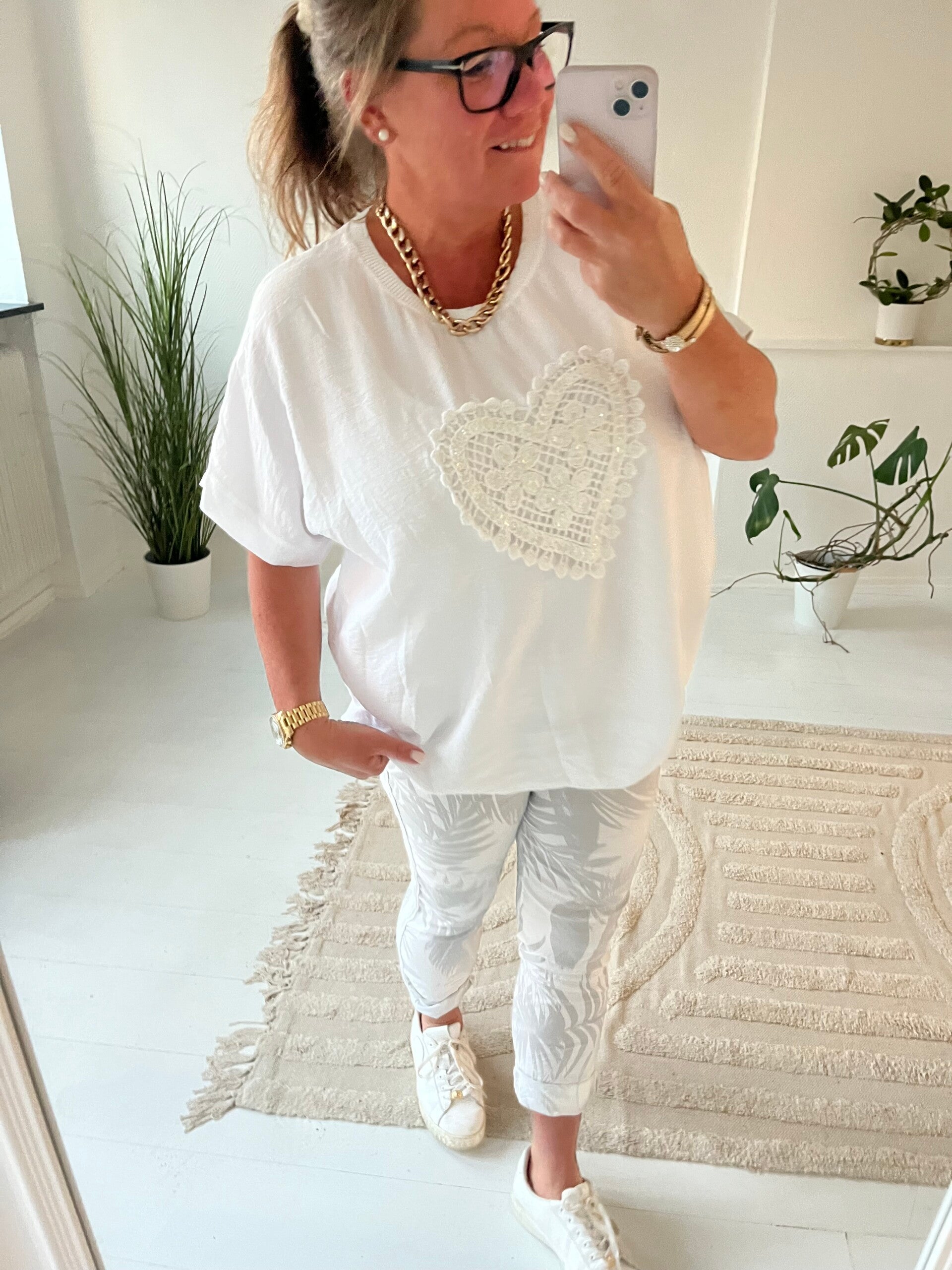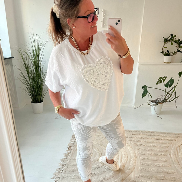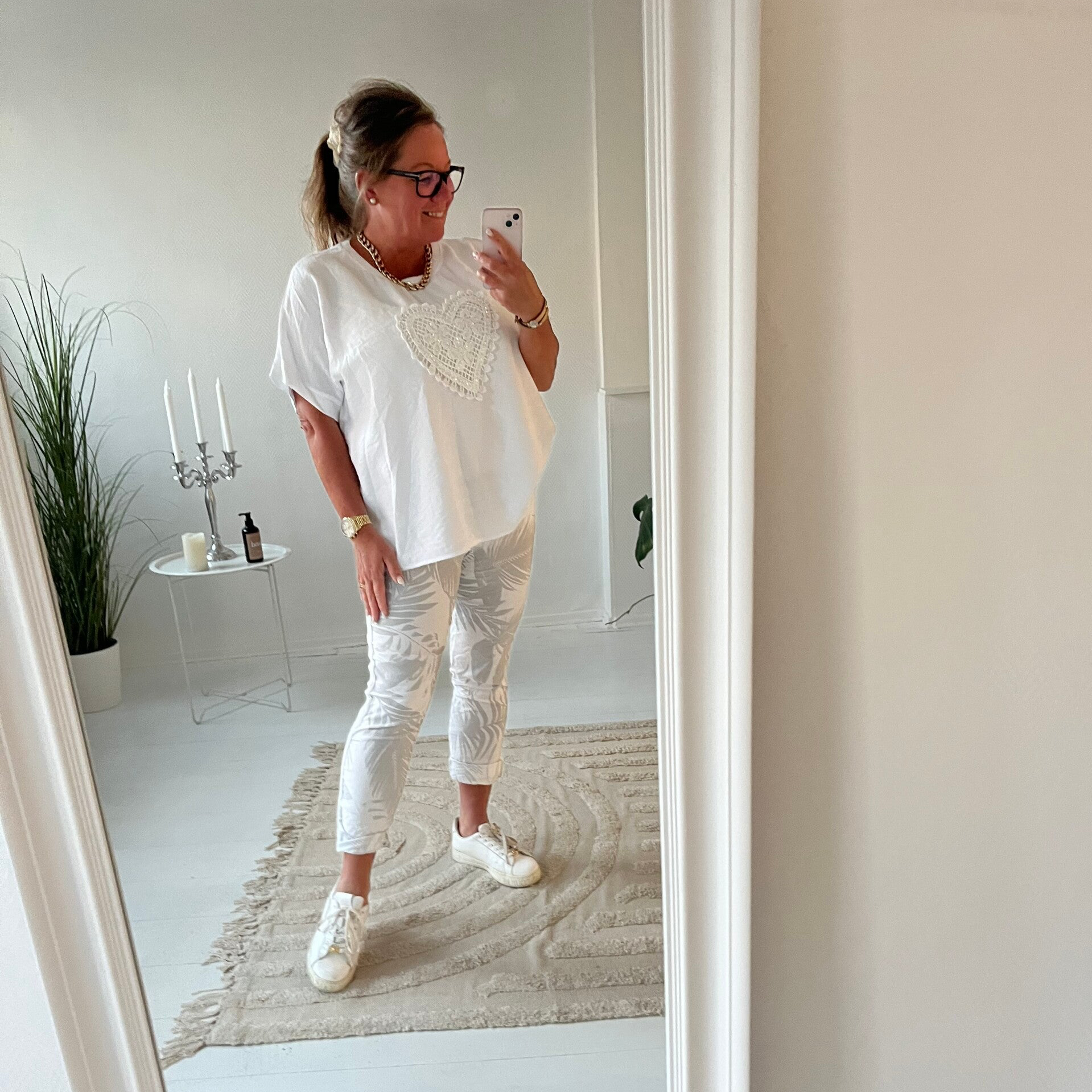 Mönstrad lite tunnare byxa vit