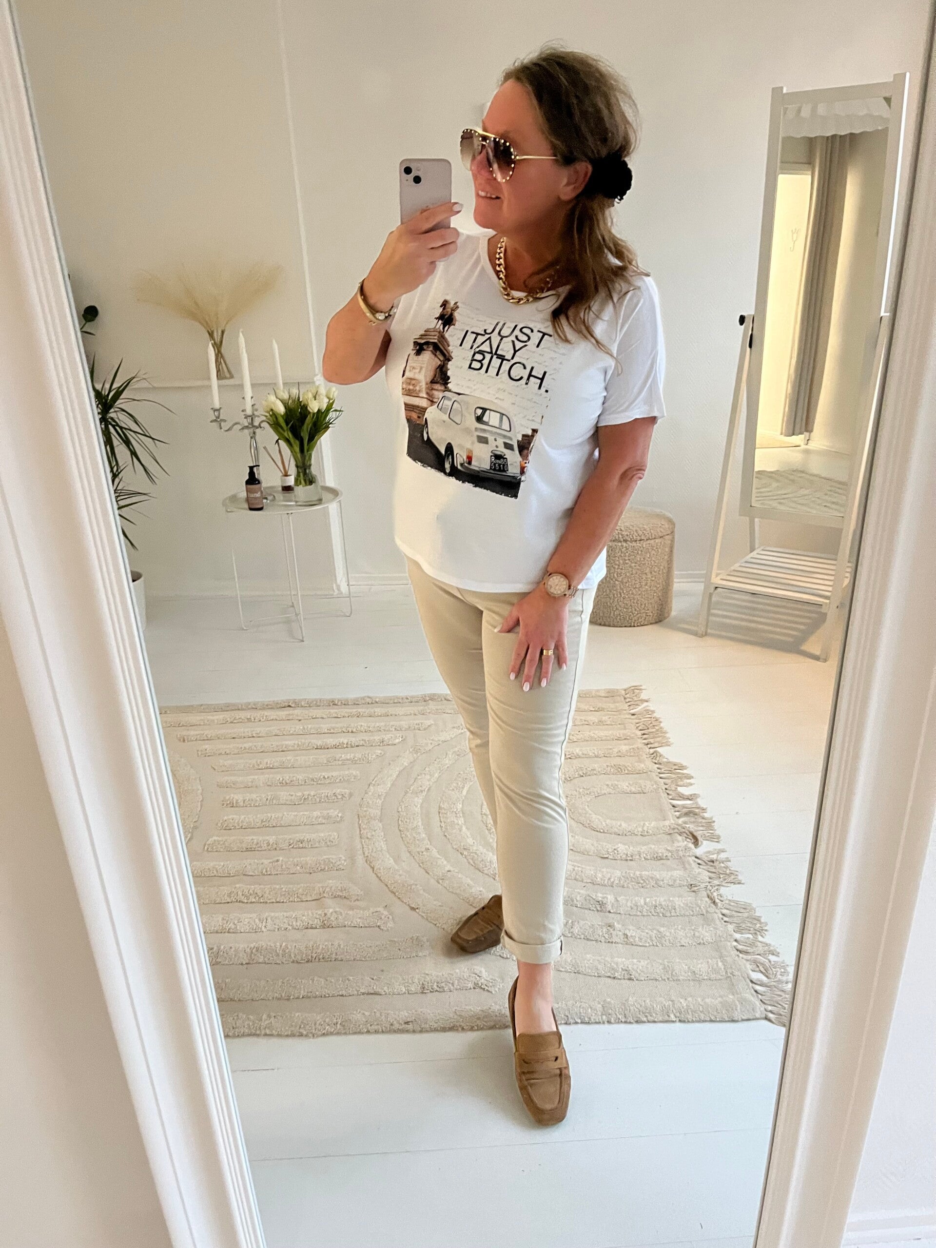 Super mjuk tisha med print som är lika snygg till brallor som med en kavaj utan på el till ett par shorts till sommaren.