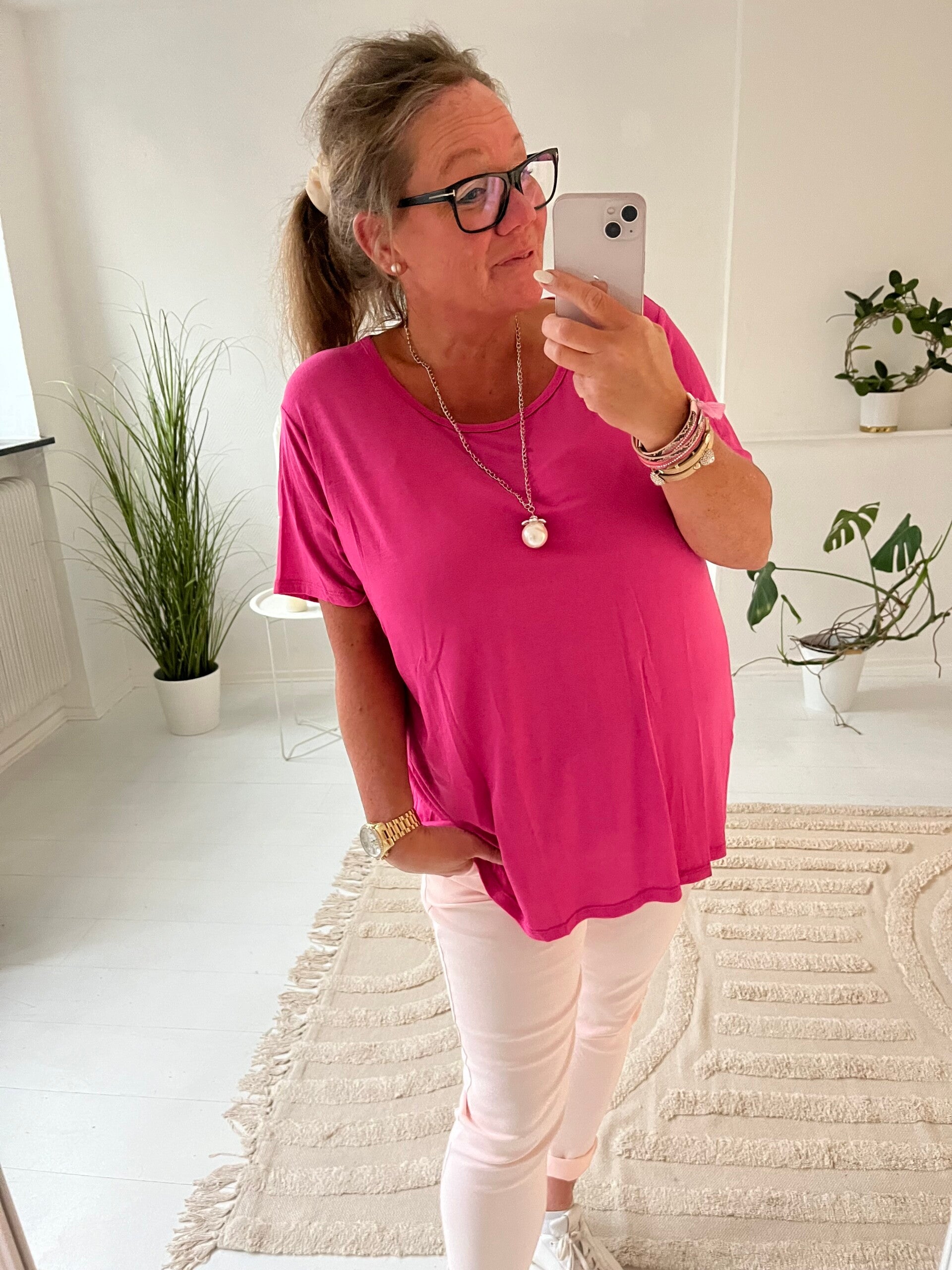 En otroligt mjuk tisha där ett silvrigt halsband ingår.
