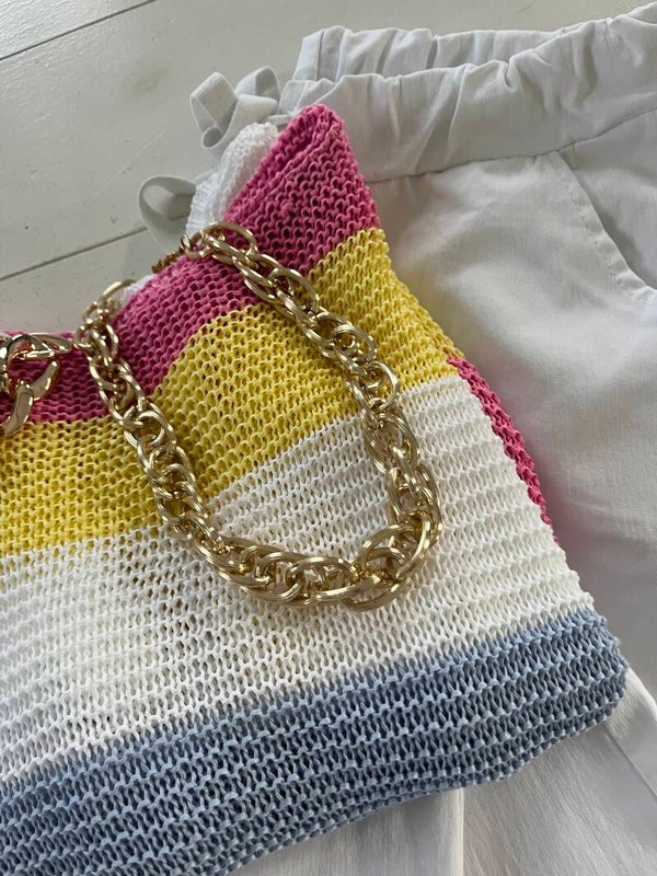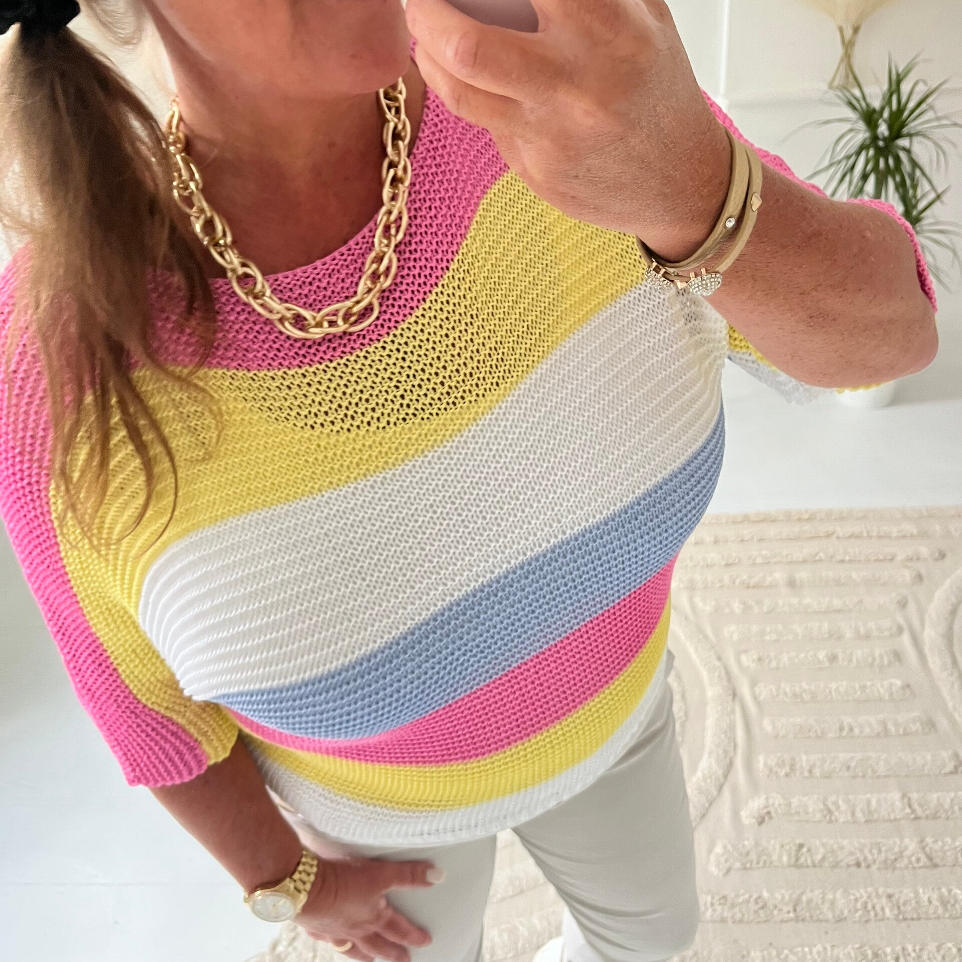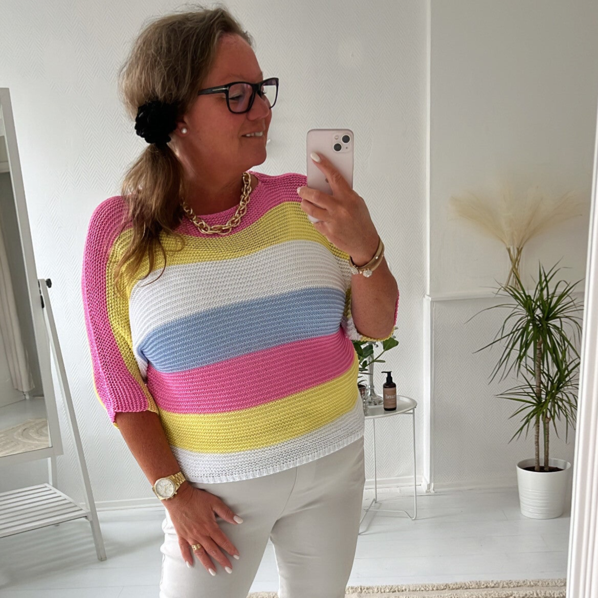Randig glesstickad tröja med 3/4 ärm.