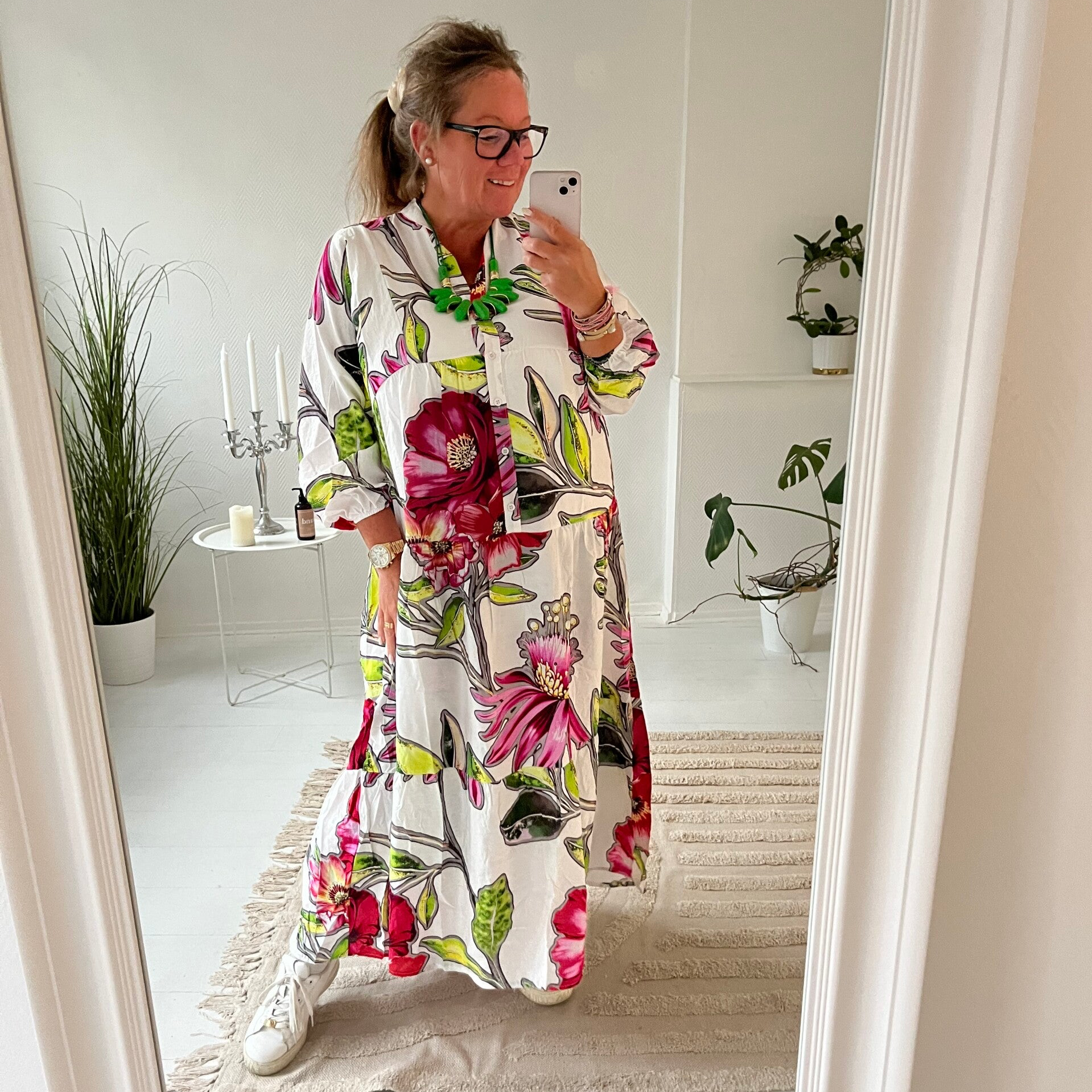 Storblommig långklänning