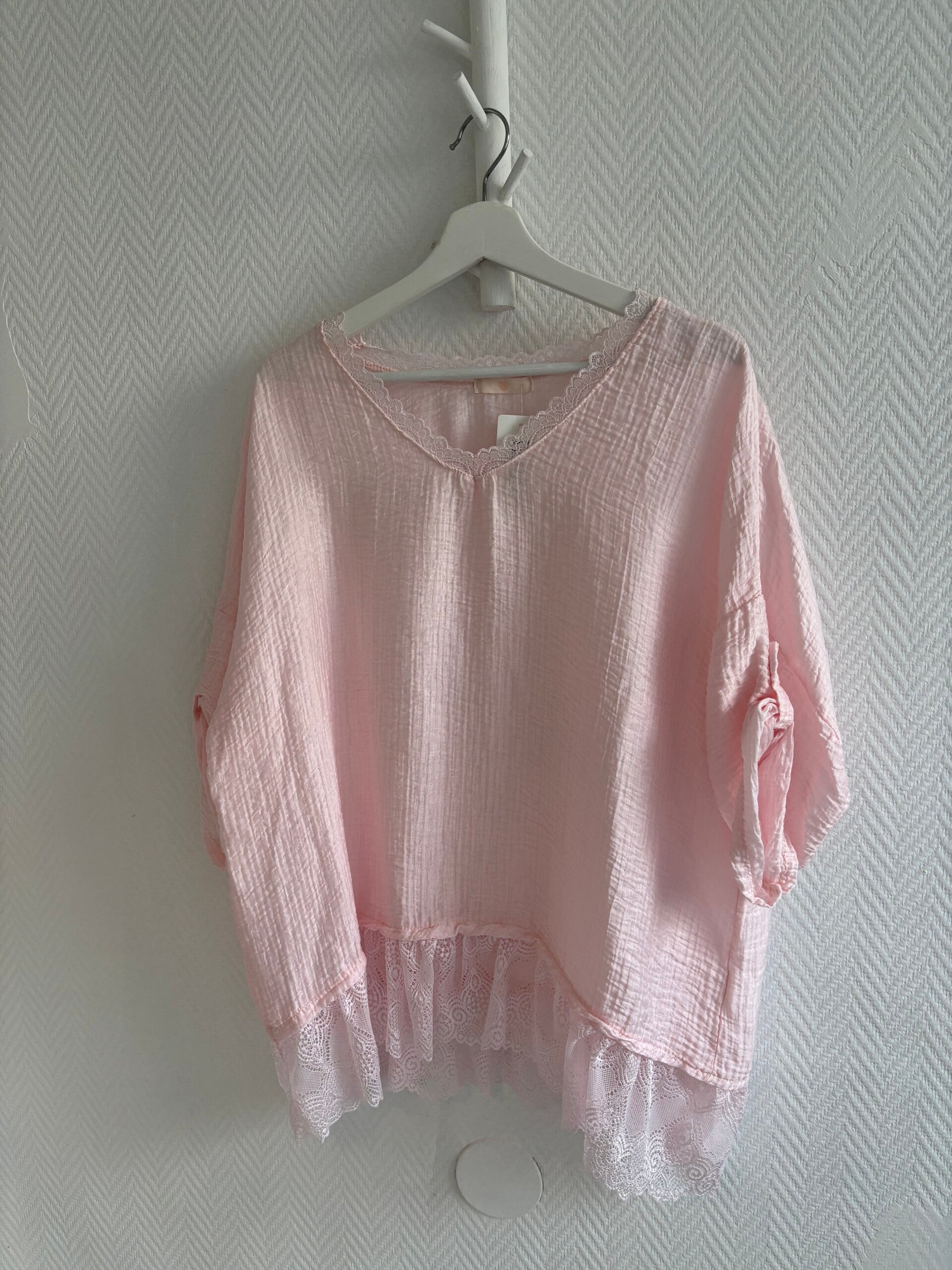 Rosa blus med spets