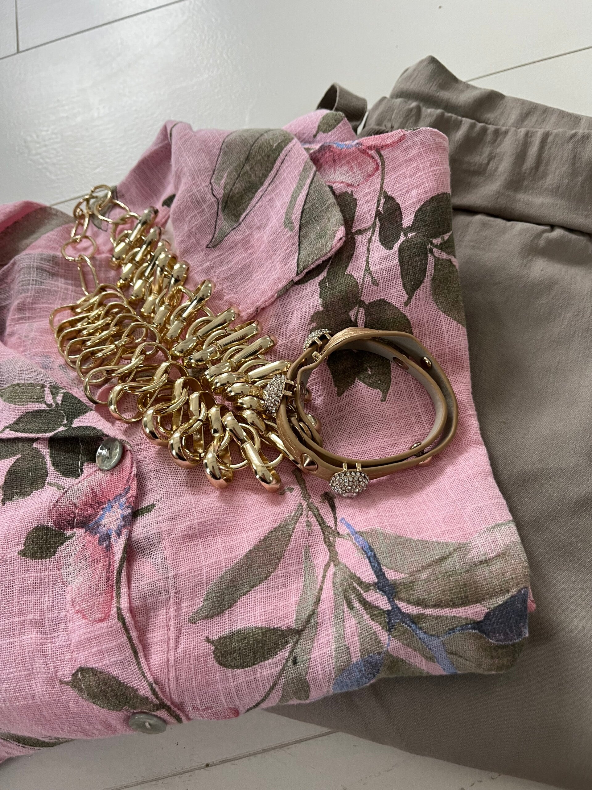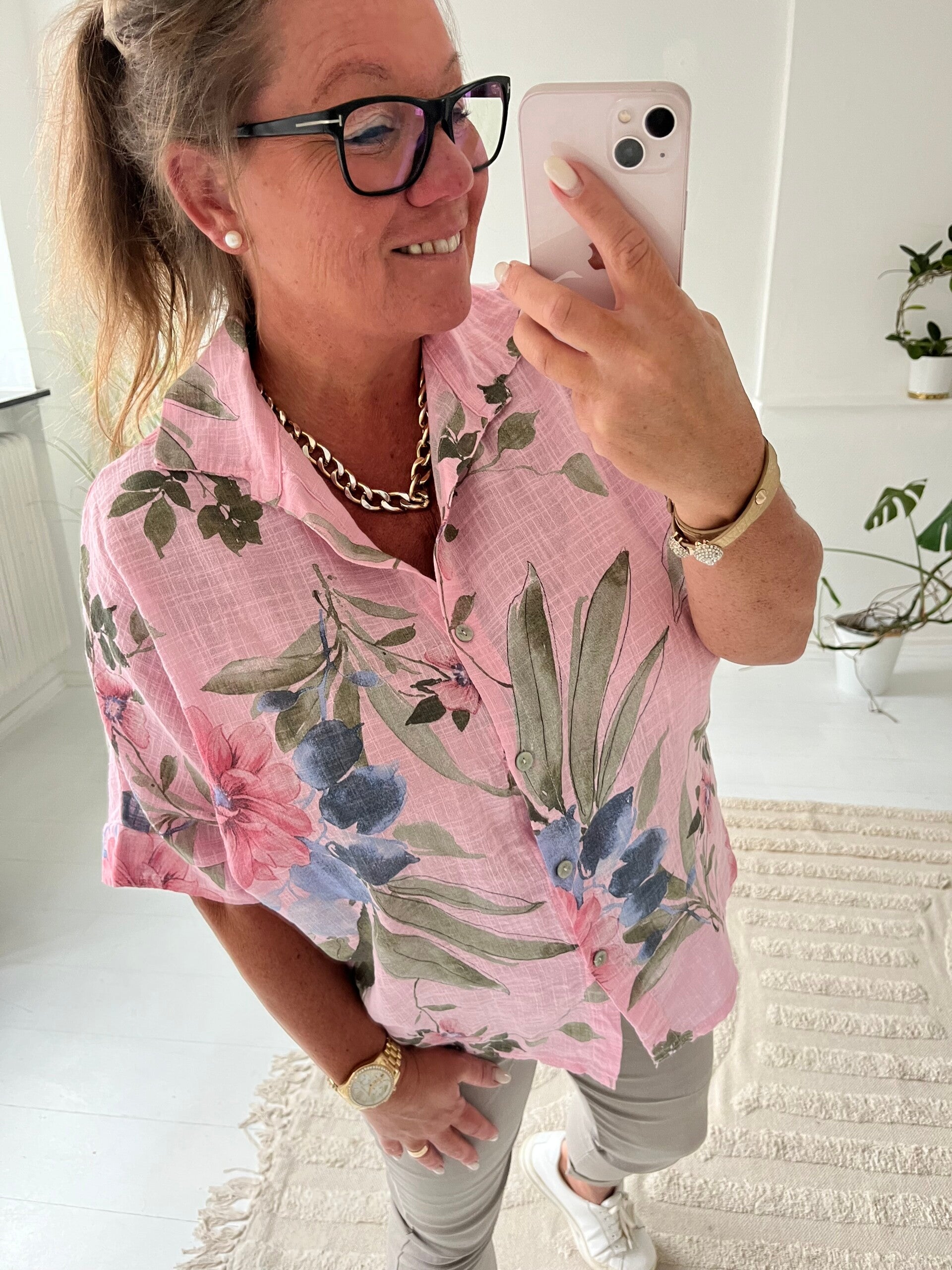 Blommig bomullsskjorta rosa