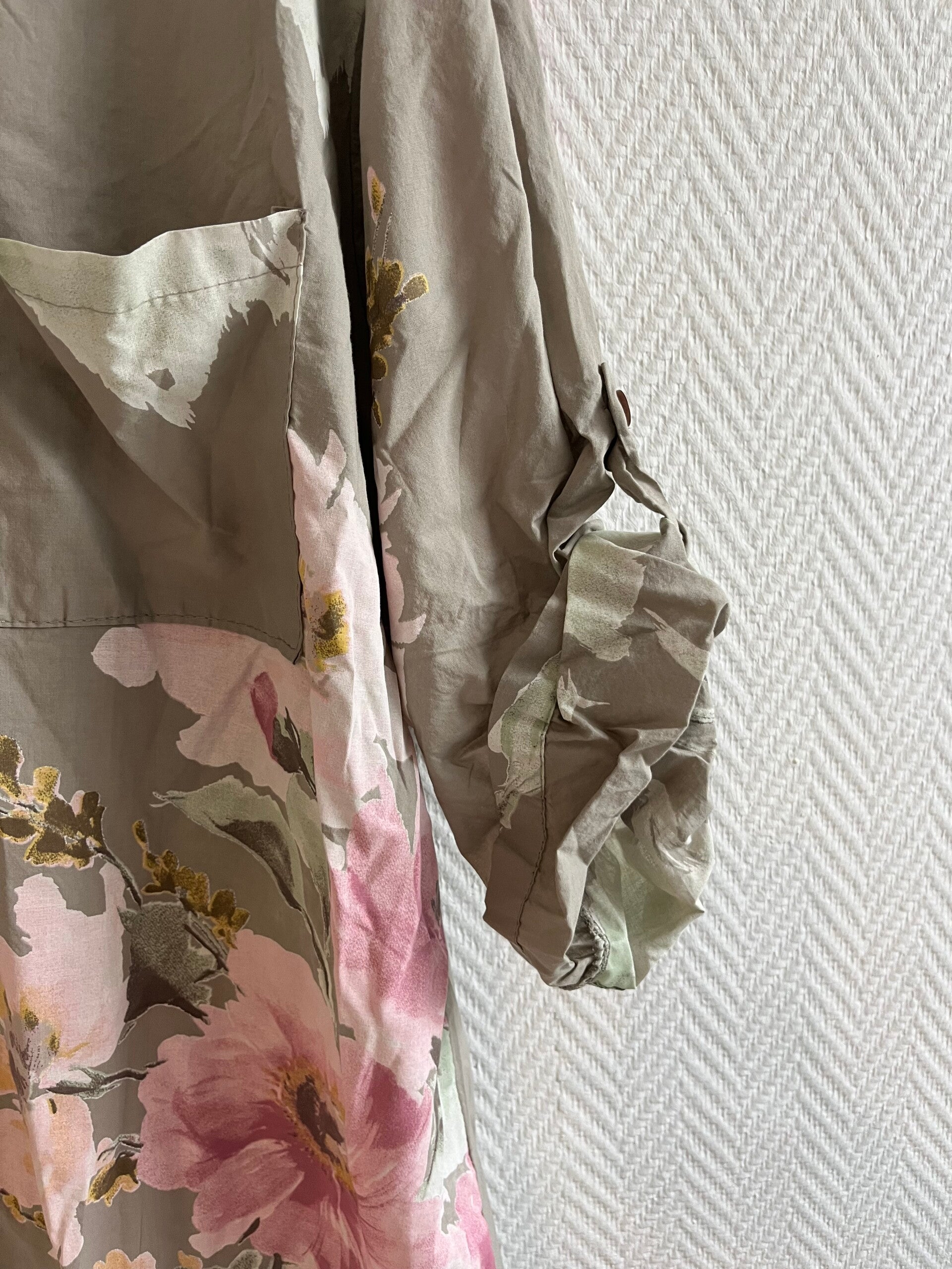 Den feminina blomsterdesignen ger ett levande och stilfullt uttryck, medan den längre modellen skapar en smickrande silhuett som passar alla kroppstyper. Bär den öppen över ett linne och jeans för en avslappnad look, eller knäpp den hela vägen för en mer dressad känsla.