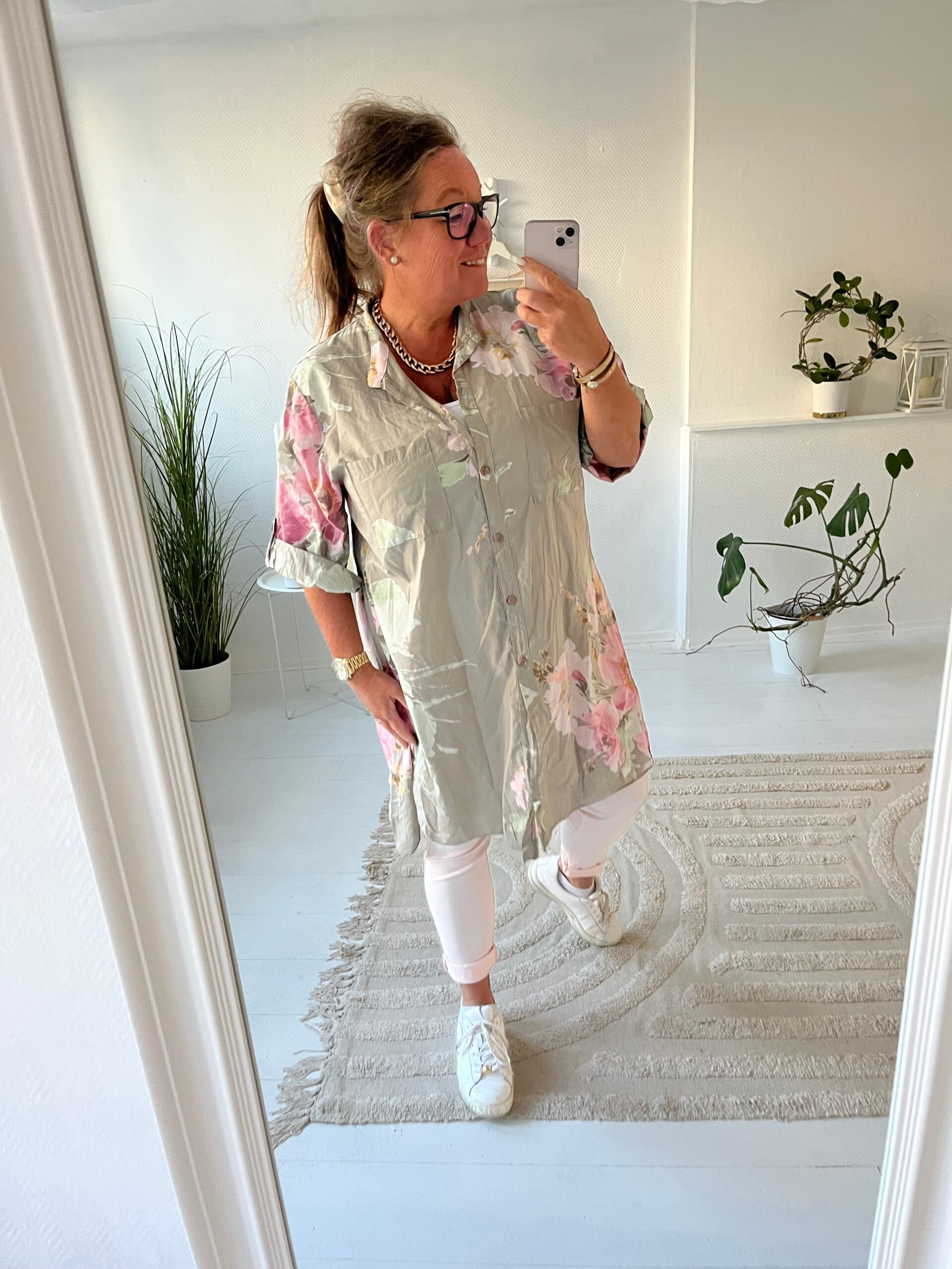 Blommig långskjorta taupe