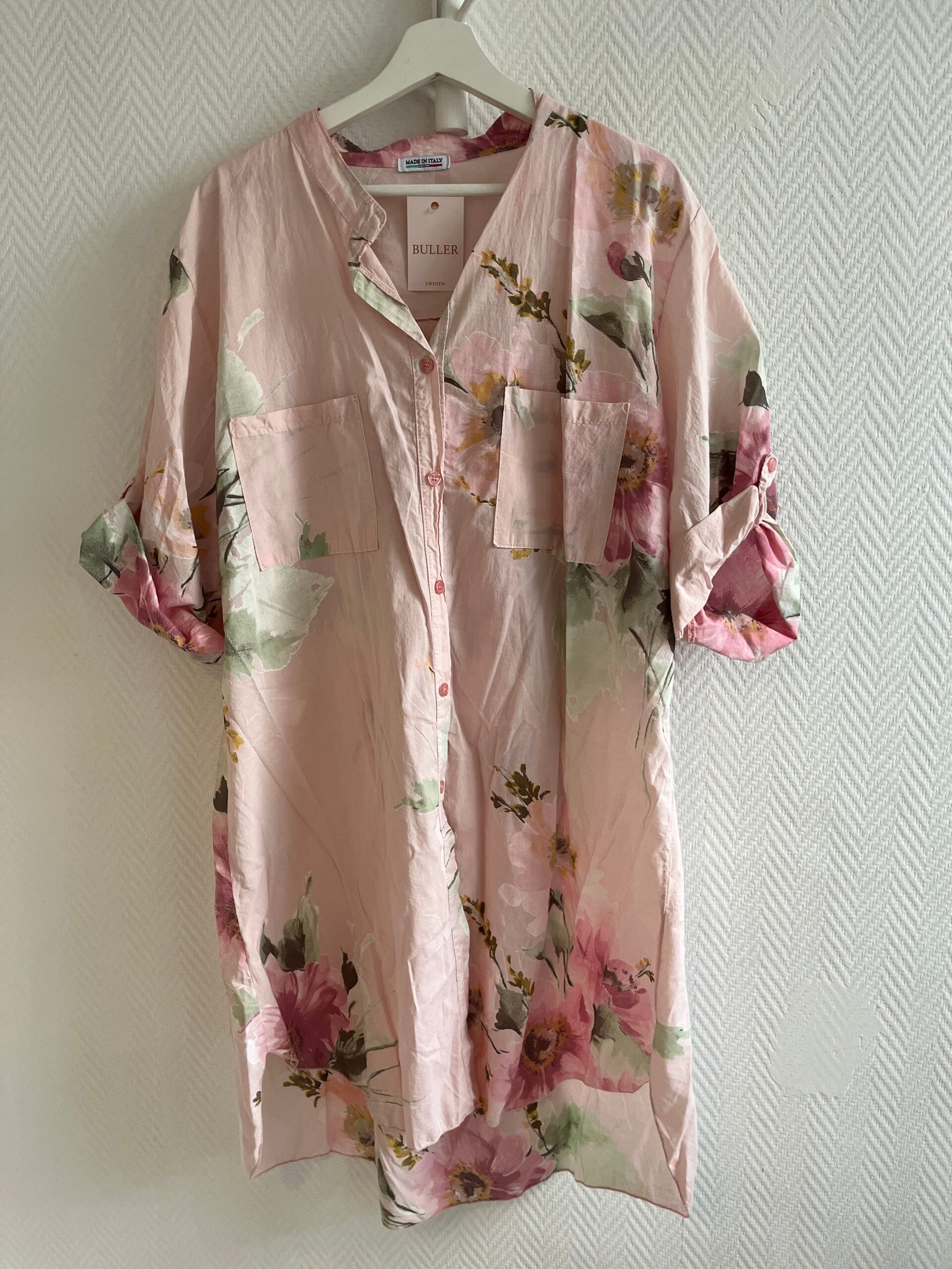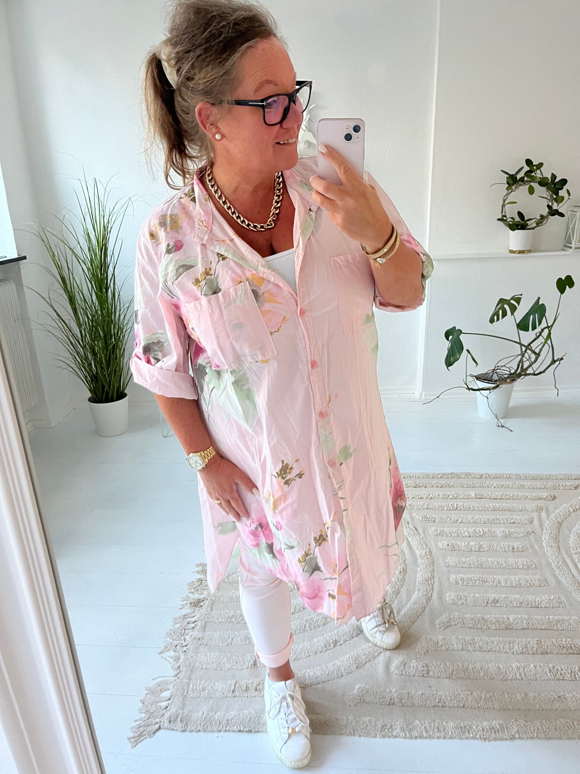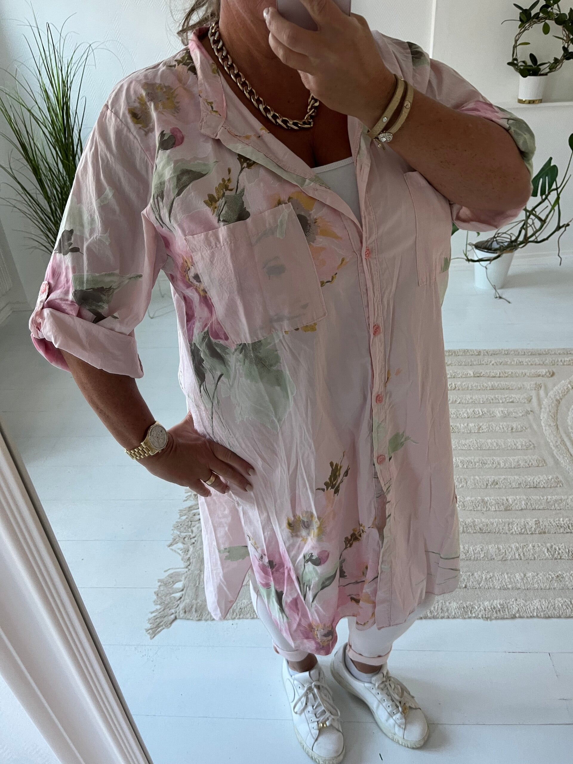 Blommig långskjorta rosa