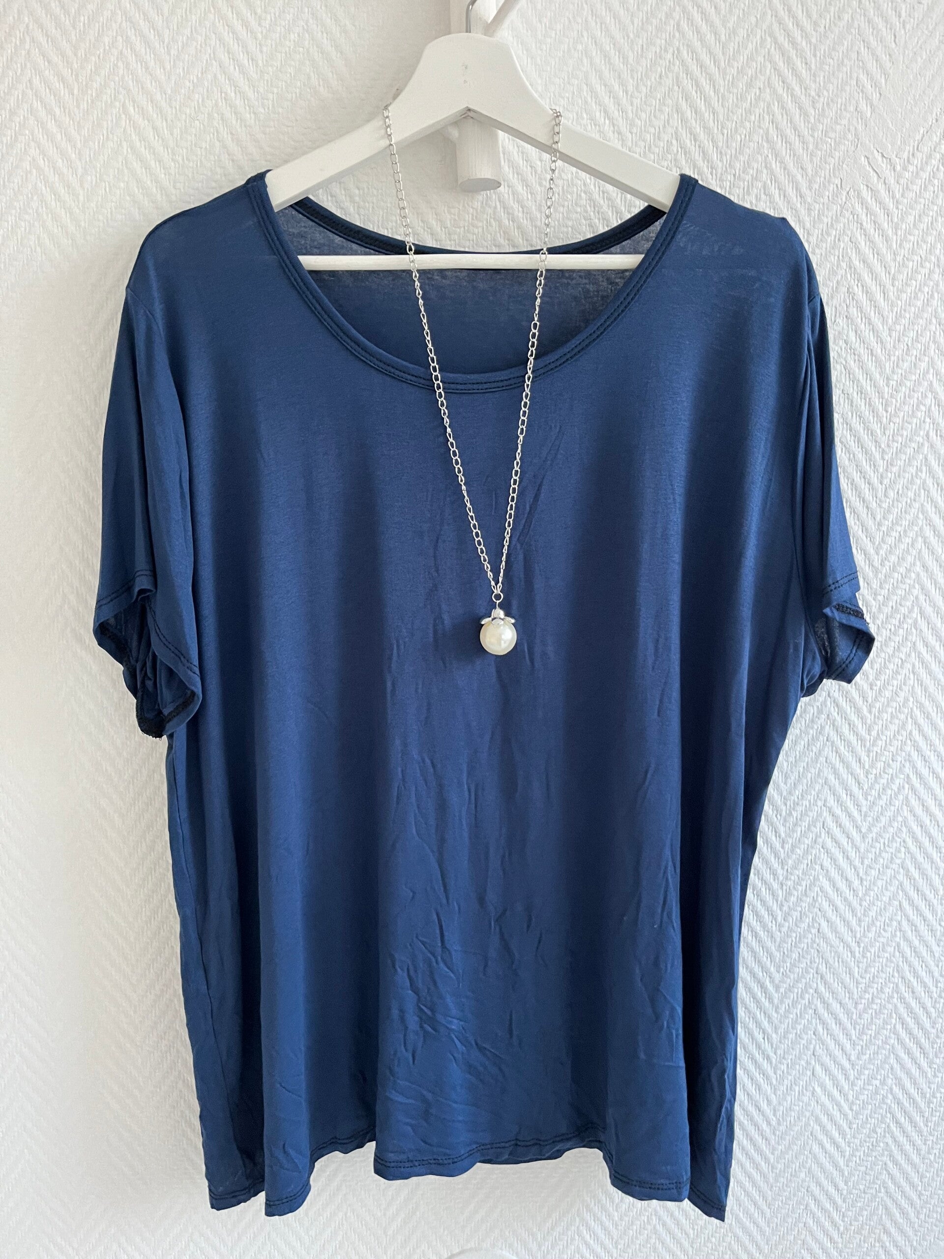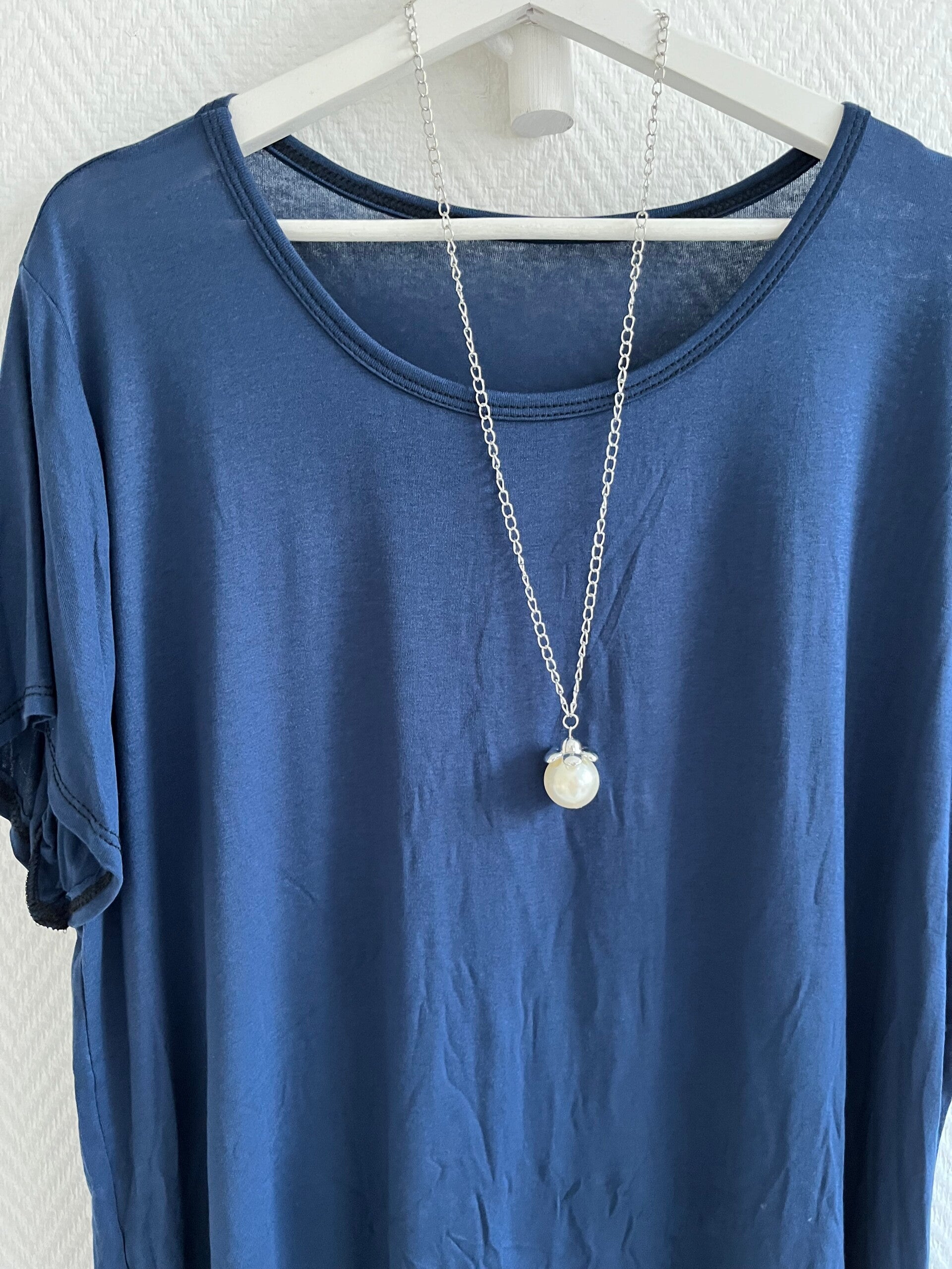 En otroligt mjuk tisha där ett silvrigt halsband ingår.