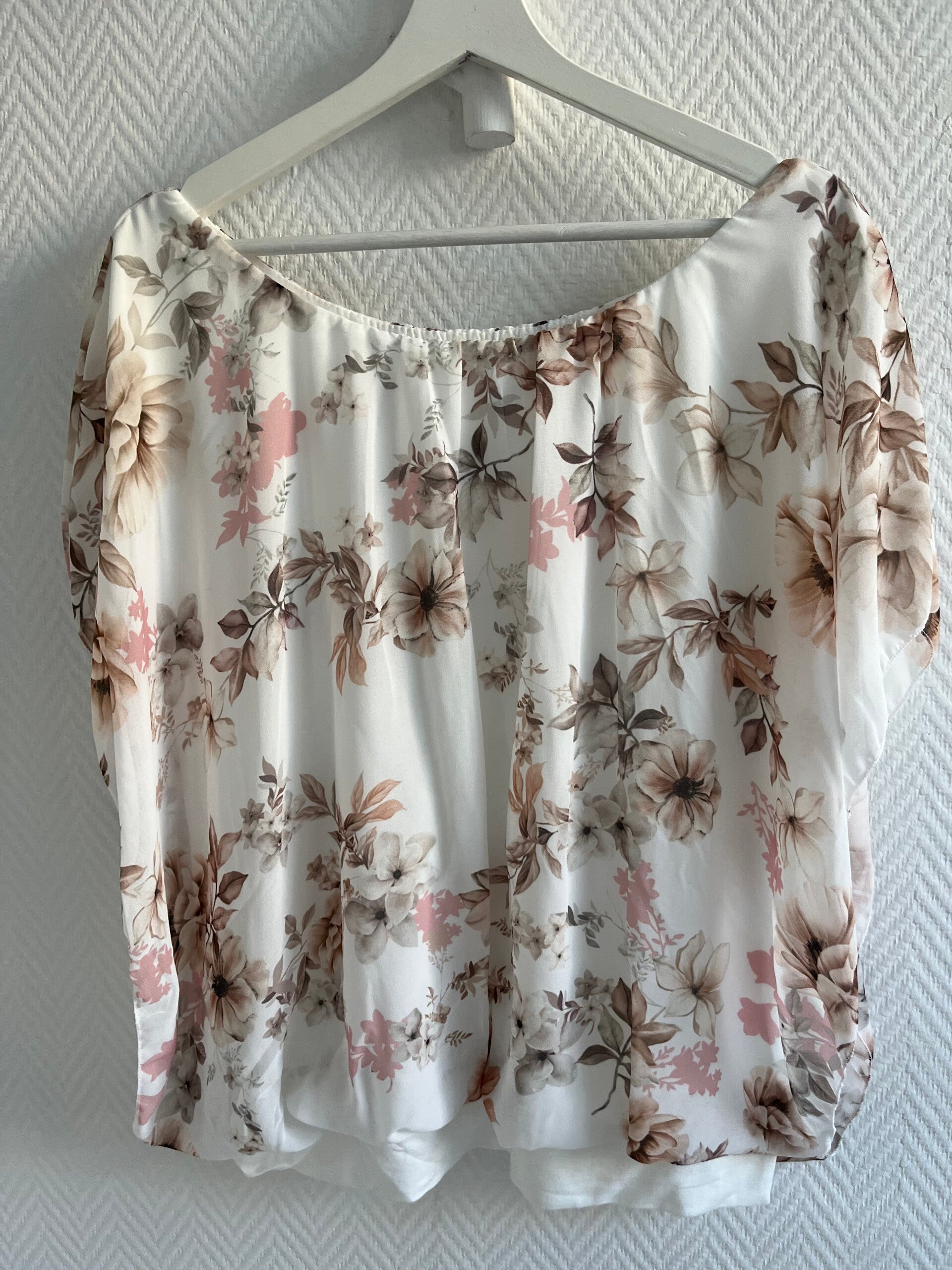 Populär chiffonblus som är lika fin till byxor som kjol,som till vardag el fest.Blusen har ett mjukt innerlinne som gör att yttertyget faller fint utanpå.