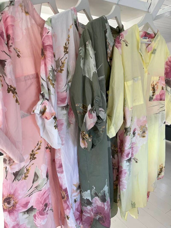 Blommig långskjorta rosa