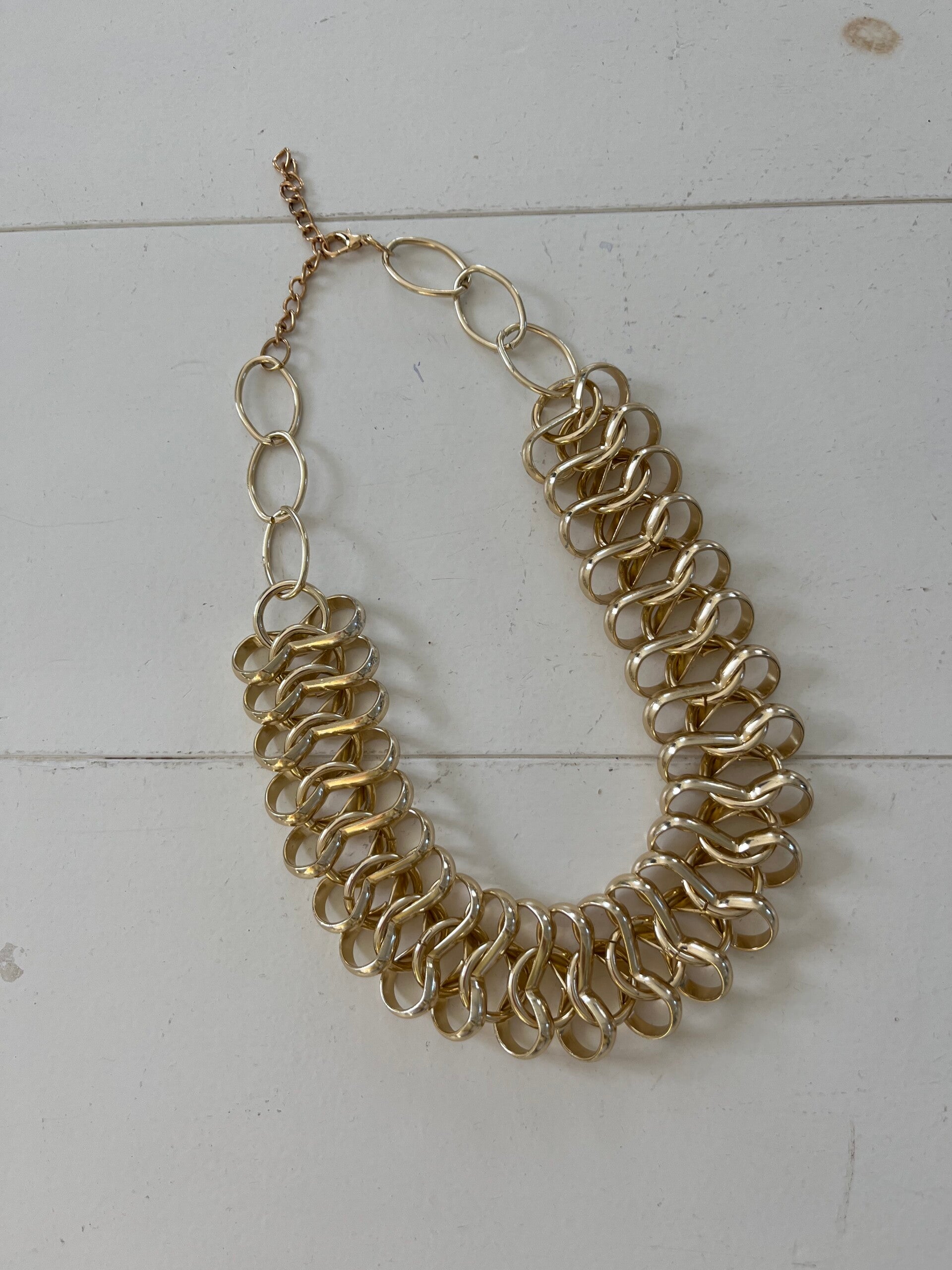 Ligger snyggt runt halsen, halsbandet är maffigt men inte tungt.