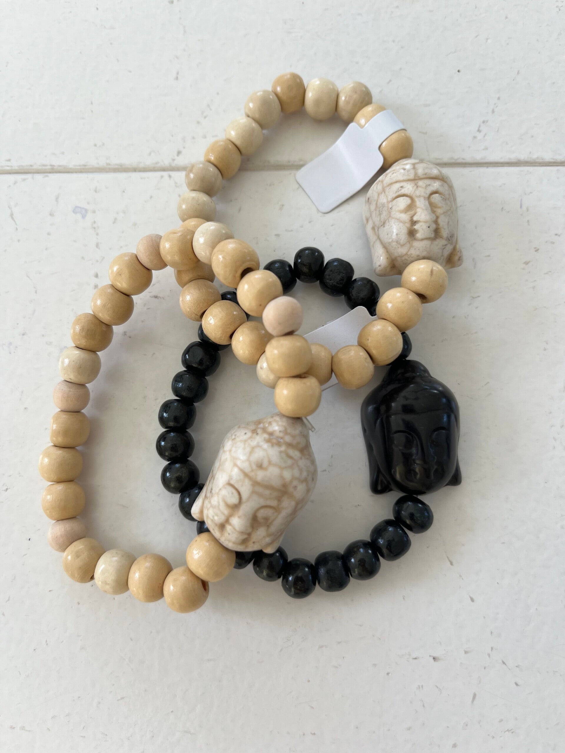 Stilrent gummibandsarmband med ett läckert buddhahuvud på.