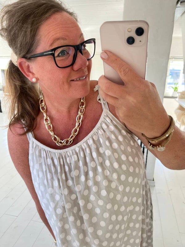 Med denna prickiga sommardröm på är du lika snyggt klädd på festen som på jobbet som på playan på väg till lunchen...